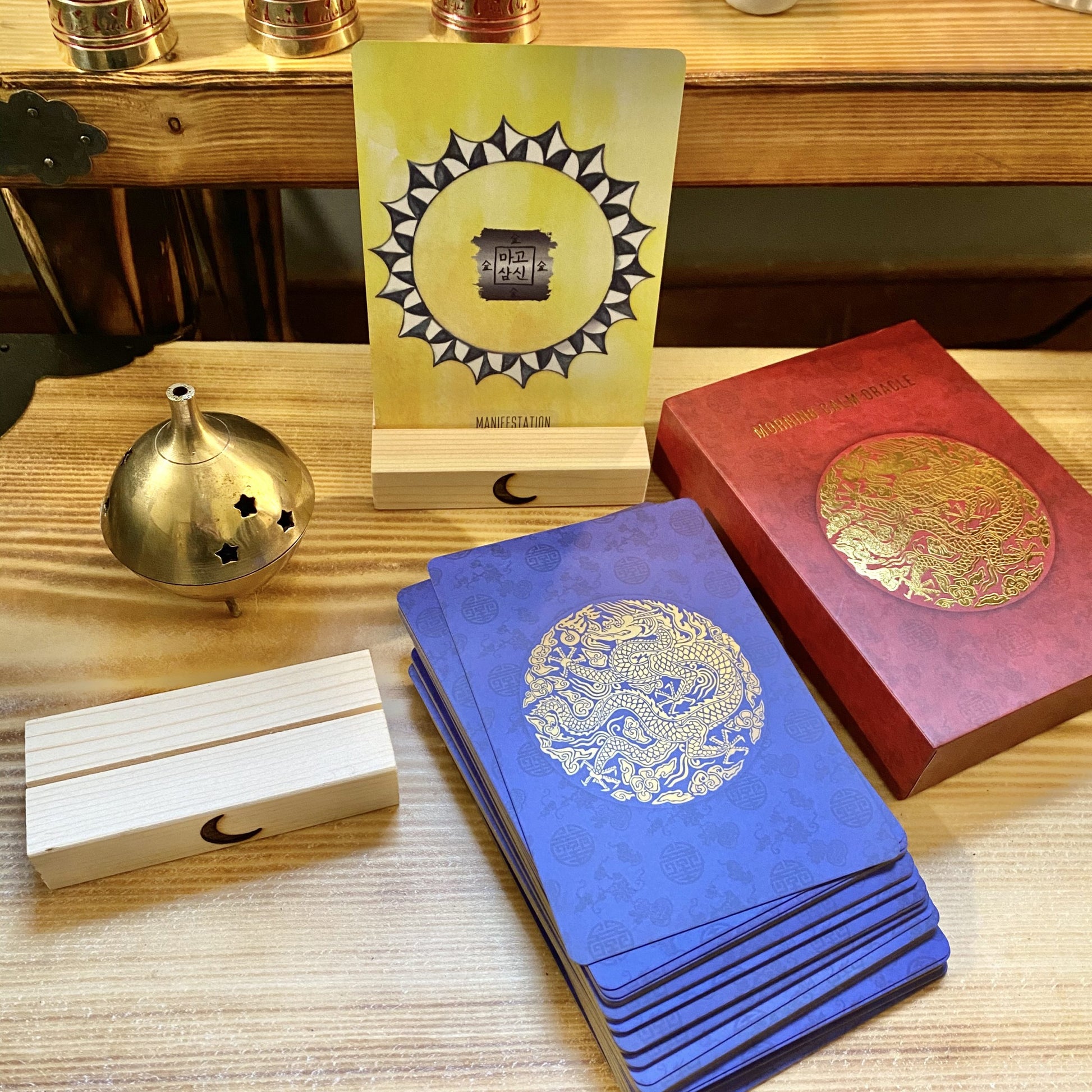 The card stand was custom made near Joshua Tree, California to be used with Morning Calm Oracle, or you can use with other favorite card decks. Use it on your altar for rituals and energy application with one of the Sigil cards.
