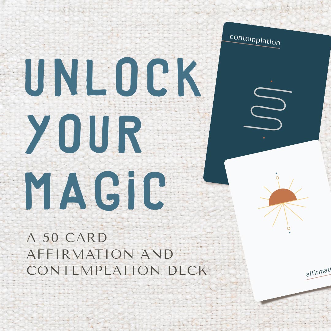 Unlock Your Magic Affirmation & Contemplation Deck is a 50-card deck designed to help you connect with the inner wisdom and take inspired actions.